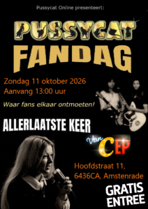 Pussycat Online presenteert:De aller- allerlaatste Fandag van Pussycat. met Je kunt hun alles vragen wat je nog niet weet over Pussycat en ook vertellen hun leuke adekdotes. Je bent van harte welkom! Zondag 11 oktober 2026Vanaf 13.00 uur Café van CepHoofdstraat 116436 CA Amstenrade(Zuid Limburg / Nederland) Entree is gratis! Website >>>>>>>>>>>>>>>>>>>>>>>>>>>>>>>>>>>><<<<<<<<<<<<<<<<<<<<<<<<<<<<<<<<< Pussycat Online presents:The …