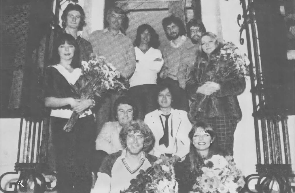 The ladies of Pussycat and manager Jan Buys presented with flowers by EMI!