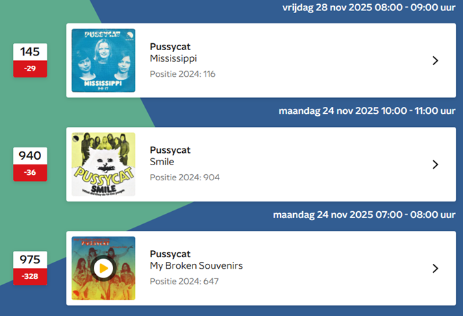 Here are the lists where Pussycat can be found….