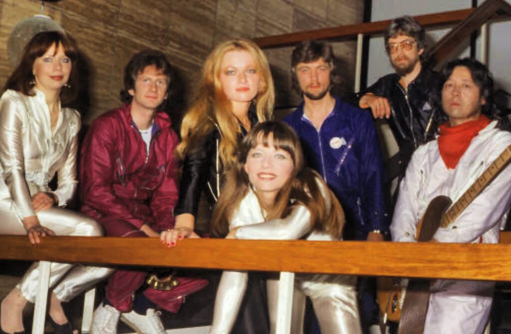 Pussycat at the Dutch TV programm Avro’s Toppop, for the performance of Same Old Song, 04-03-1978Pussycat with manager Jan Buijs